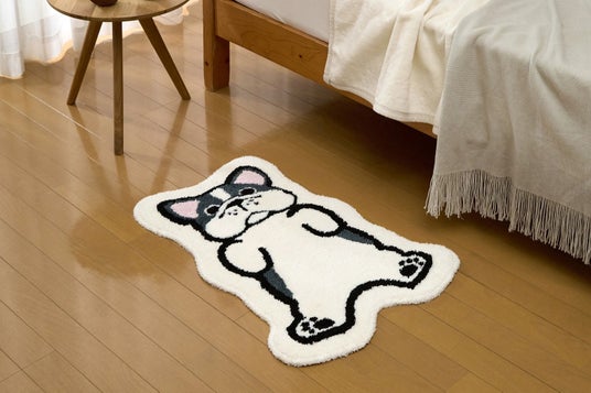 本商品は、犬が仰向けでリラックスする姿、いわゆる「ヘソ天」をモチーフに、立体的な構造で表現したマットです。インテリアとしてのデザイン性と、触れた際の心地よい質感の両立を図っています。主な特長は以下のとおりです。