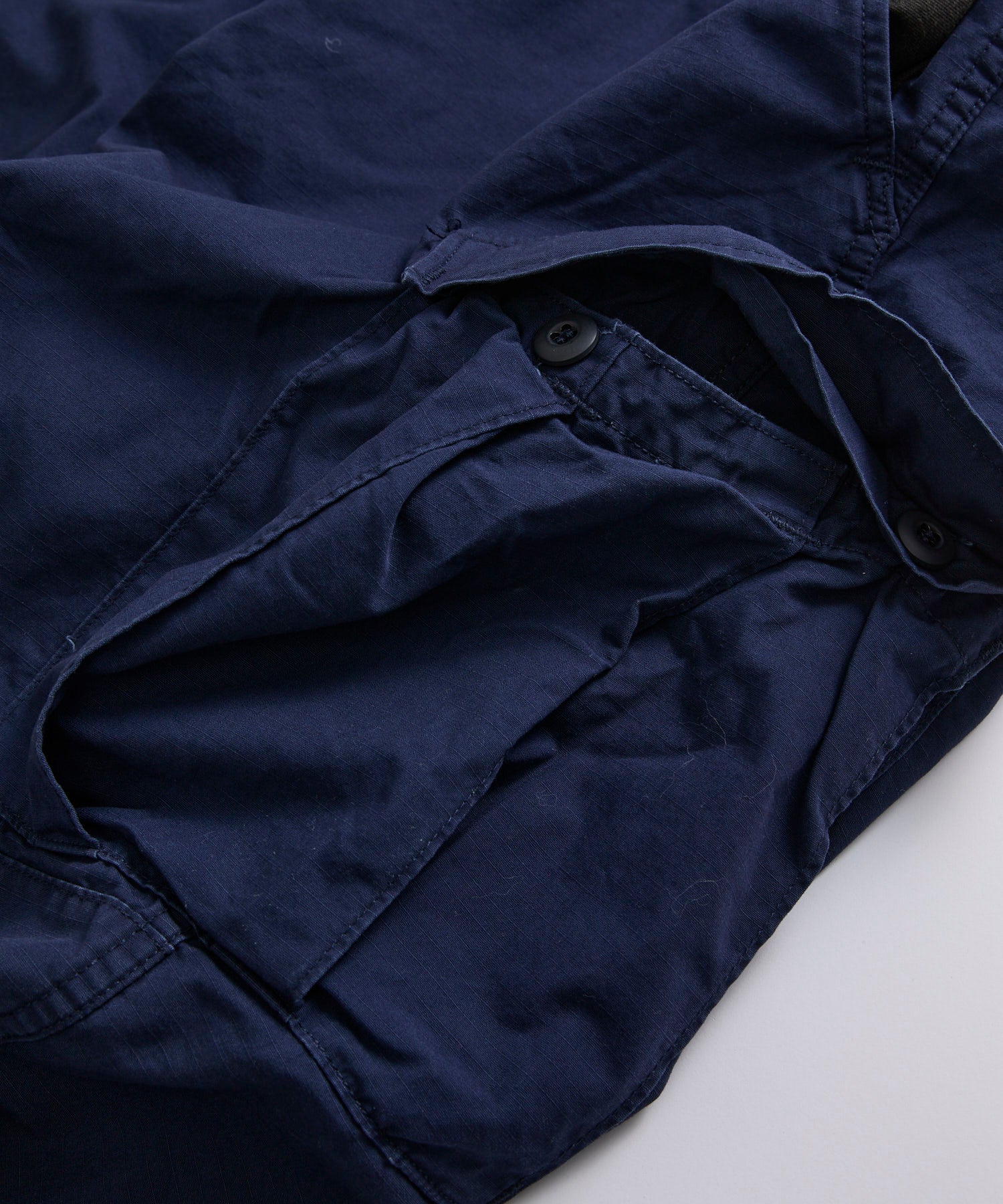 こちらはプロッパーの代表的な製品BDUカーゴパンツです。BDUとはBattle Dress Uniformの略で米軍の伝統的なカーゴパンツを忠実に再現しており、高い収納力と摩耗しやすい膝と尻が二重に補強されており、非常にタフな作りです。生地は今では珍しいコットン100%のリップストップ。破れが方眼目で留まる様になっているので破れに強い構造になっています。ウエストサイドのアジャスターでサイズ調整が可能。裾にはドローコードがあり、シルエットの変化を楽しめます。