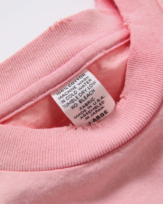 その他にも25mm幅のネックリブ、裾と袖はシングルステッチ(天地引き)仕上げ、縫製は全てシングルロックなど当時の雰囲気を再現。100%アメリカンコットン(米綿)で編み立てられた6.2オンス生地は米国製でもちろん丸胴。それを日本で縫製している特別な1枚。