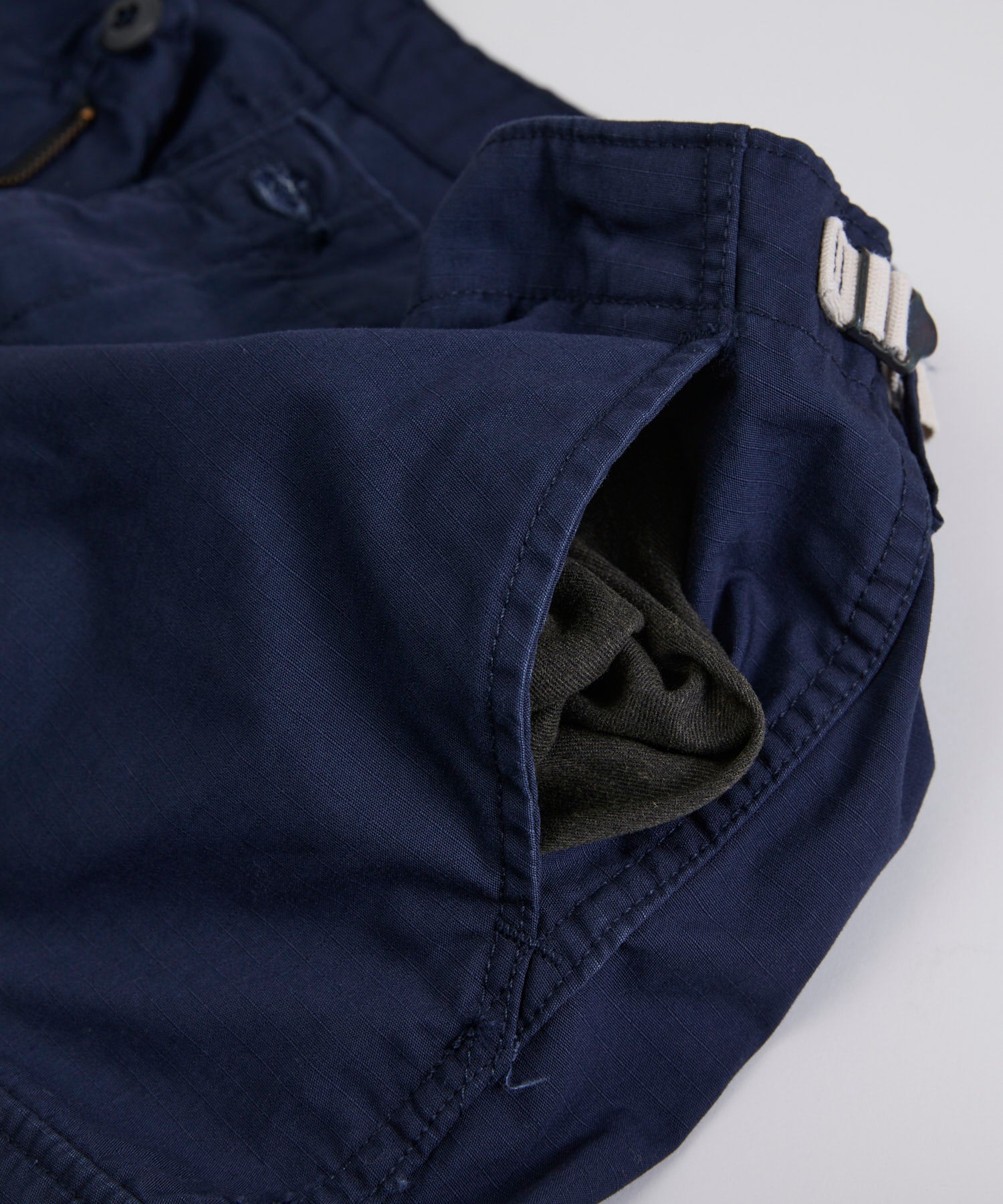 現在はダブルステッチが主流のため、このような縫製はほぼ存在しないが、ヴィンテージ好きにはたまらないマニアックなディテール。機能性は異なるが、デニムでいうセルビッチ(耳)的な存在に近いディテールとも言われています。