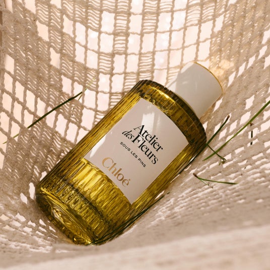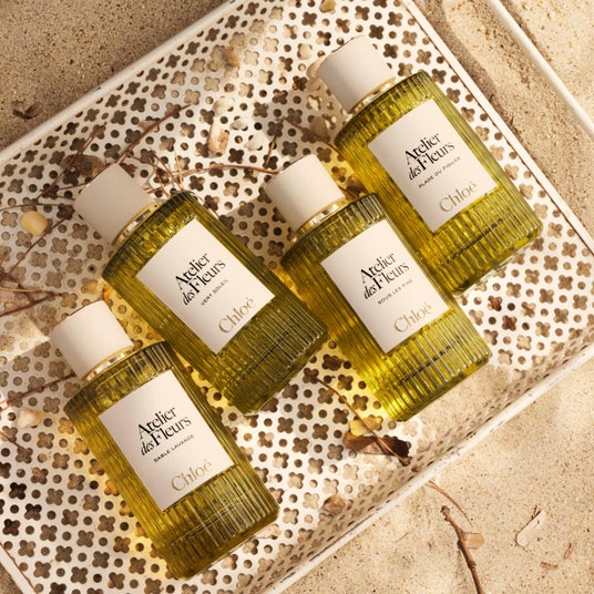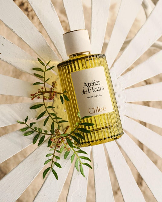 ボトルは、Chloeが大切にしてきた、時代を超えるエレガンスとシンプルさを体現。ゆるやかに波打つフォルムは、〈アトリエ デ フルール〉の象徴であるプリーツ・ソレイユへのオマージュです。あたたかなグリーンのカラーは、地中海の豊かな風景を想起させ、質感のあるキャップは砂を思わせながら、地中海の水平線へと続くメゾンの深い結びつきを映し出します。