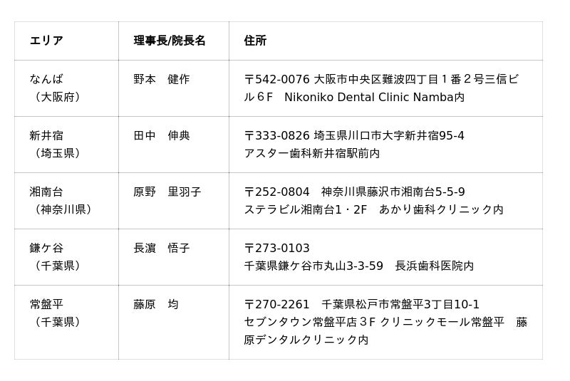 2026年3月、新たなホワイトエッセンス加盟歯科医院として、以下の5院がオープンいたしました。