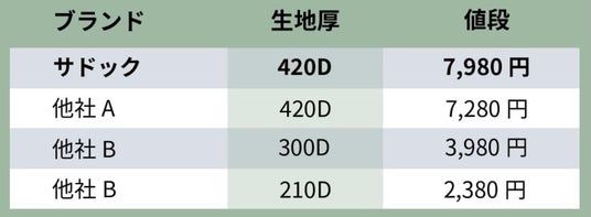 一般的に生地厚により値段が決まります。SaDock(サドック)は最も丈夫で厚くストレスフリー。
