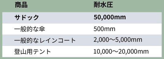 驚異の耐水圧50,000mm