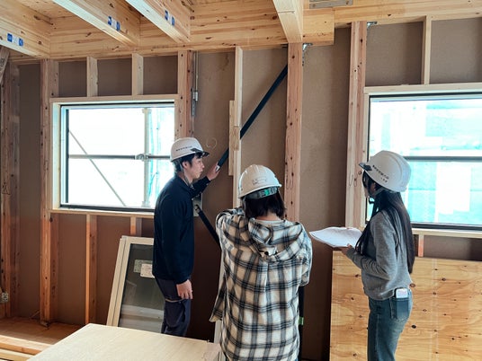 3月中旬には、当社分譲住宅「ブルーミングガーデン」の物件見学会を実施いたしました。本見学会では、造成工事から上棟、木工事、竣工までの各工程を実際の現場で見学し、住宅が完成するまでの一連の流れを体感いただきました。