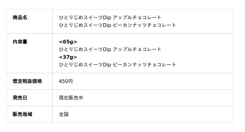 ひとりじめスイーツDipアップルチョコレート(左)、ひとりじめスイーツDipピーカンナッツチョコレート(右)