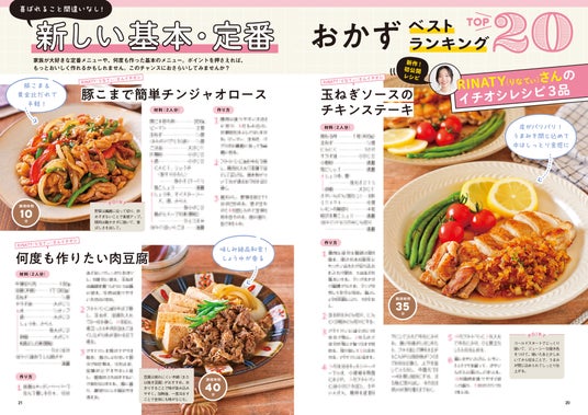 家族が大好きなメニューや、何度も作った定番メニューを紹介。人気料理家、りなてぃさんの新作! イチオシレシピも初公開します。他にも低空飛行キッチンさんの手間抜き時短・簡単おかず、つくあやさんの食べごたえ◎な節約おかず、DOKINさんの子どもが喜ぶがっつりおかずなど人気料理家による新作レシピを掲載しています。