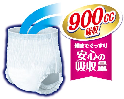 たっぷり900ccの吸収量で、朝までぐっすり安心