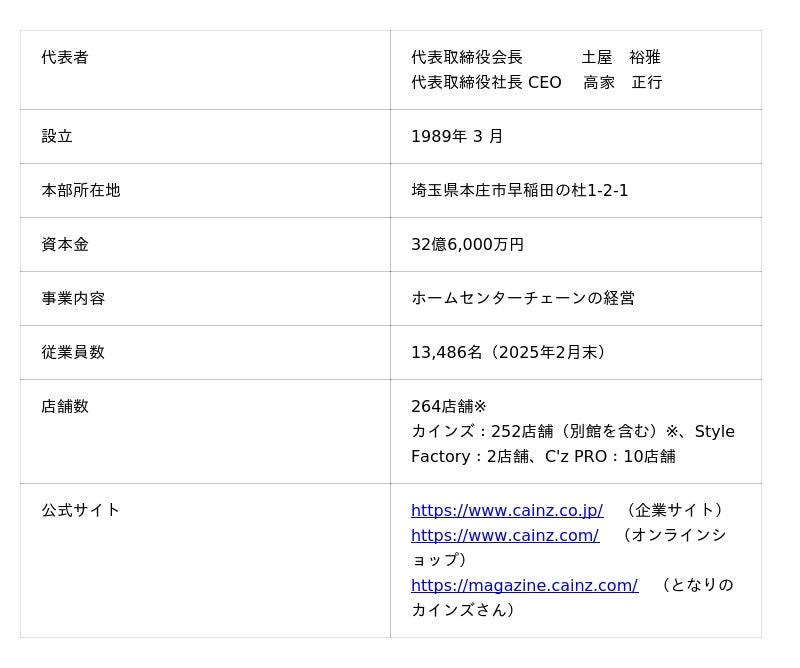 <株式会社カインズ 概要>