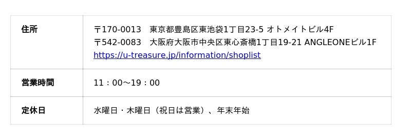 お客様のお問い合わせ窓口(ユートレジャーオンラインショップ)◆お問い合わせフォーム>> https://u-treasure.jp/contact