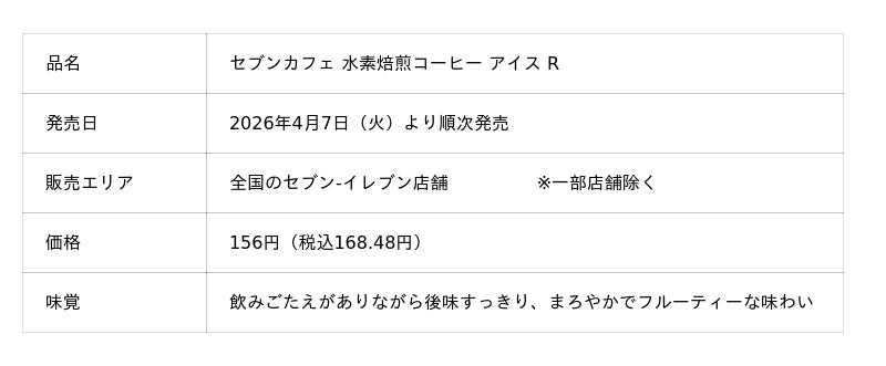 『セブンカフェ 水素焙煎コーヒー アイス R』概要