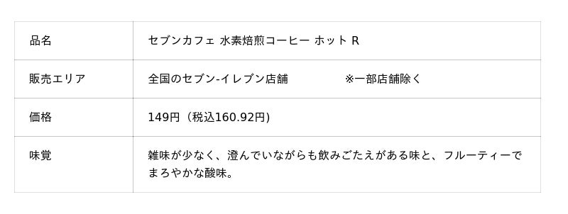 『セブンカフェ 水素焙煎コーヒー ホット R』概要
