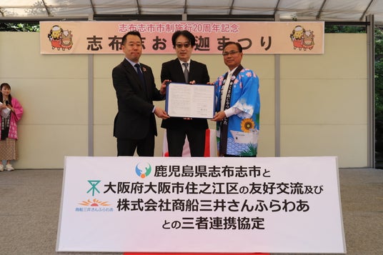 令和7年4月 志布志市・大阪市住之江区・株式会社商船三井さんふらわあによる三者連携協定締結