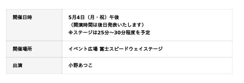 ~イベント広場が、笑顔あふれる“うたの時間”に~ゴールデンウィークの富士スピードウェイに、親子で楽しめる特別なステージが登場。