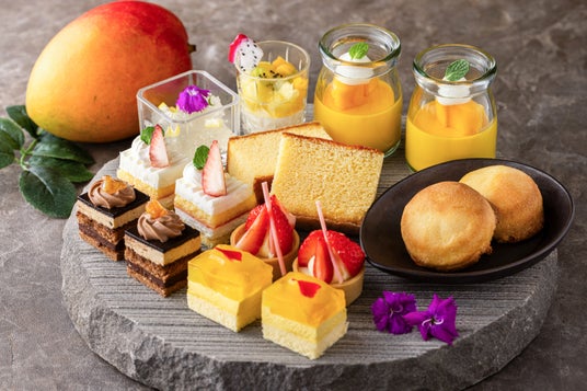 南国の太陽をたっぷり浴びた「フレッシュマンゴー」や「マンゴープリン」、地元で愛される「チーズまんじゅう」、素朴な美味しさの「ねったぼ(芋餅)」に加え、ペストリーシェフ佐藤 浩一が監修する「その場で炙るマンゴーブリュレ」など、多彩なデザートを取り揃えました。