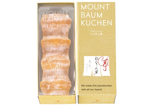 ねんりん家の代表作。皮はカリッ、中はしっとり熟成の『マウントバーム しっかり芽』。濃厚なバター風味の生地を、独自の窯で長時間じっくり焼きあげておいしさを引き出した、こだわりのバームクーヘンです。ホールタイプの1山と、気軽に楽しめる1本入をご用意しております。