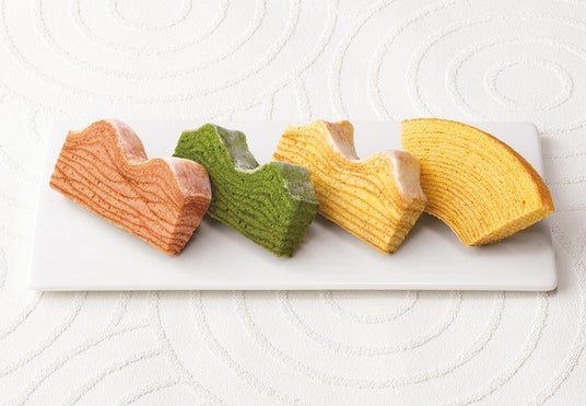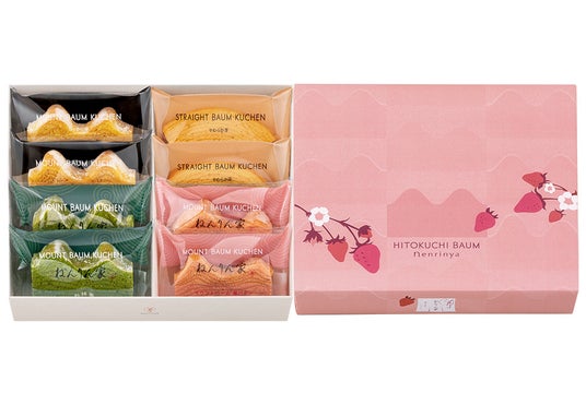 4種の美味しさを楽しめるひとくちサイズのバームクーヘン詰合せです。2つの代表作『マウントバーム しっかり芽』『ストレートバーム やわらか芽』、春限定『マウントバーム 苺バター』、芳醇に香る『マウントバーム お抹茶』。