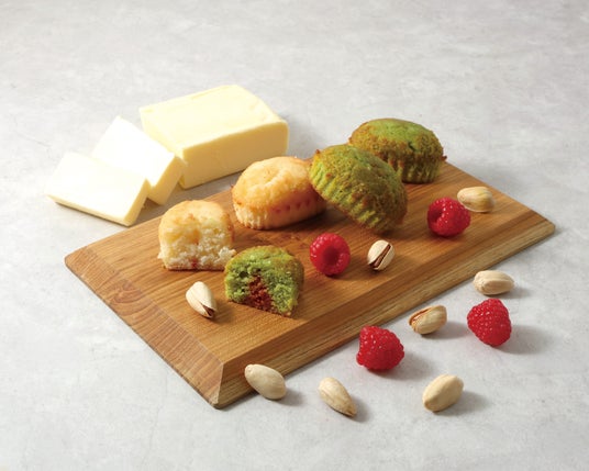 しっとりとしたミニケーキの中から、とろりとソースが溢れ出す贅沢スイーツ。芳醇なピスタチオケーキには甘酸っぱいフランボワーズソースを閉じ込め、リッチなバターケーキからはコク深いバター風味のソースがとろけ出します。ひと口ごとに濃厚な味わいと愛らしい見た目を楽しめる、春夏の特別なミニケーキです。