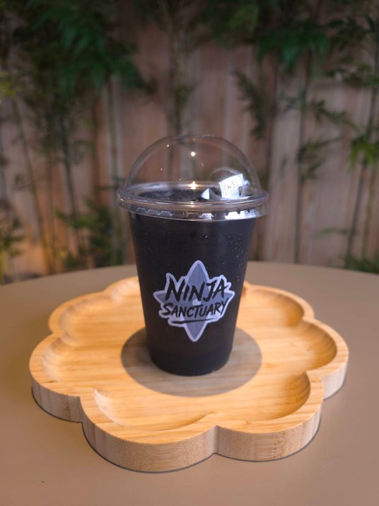 忍者が闇夜に紛れる姿をイメージした、真っ黒なビジュアルのソーダです。食用の竹炭パウダーを使用しており、見た目のインパクトとは裏腹に、すっきりとした味わいで乾いた喉を潤します。