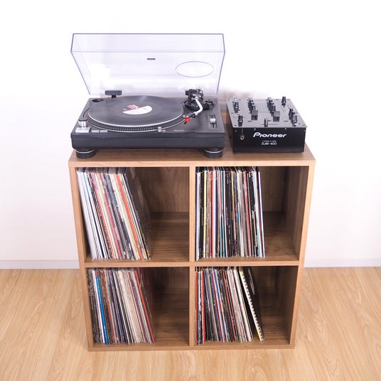 レコードプレーヤーの脇などちょっとしたスペースへの設置が可能な「ユニオンレコードラック フェイス1BOX」はまるでレコードショップのようなディスプレイが楽しめます。