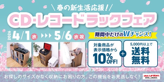 ディスクユニオン(株式会社ディスクユニオン:東京都千代田区)では、ディスクユニオン店舗およびオンラインショップにて、音楽メディア専用の収納什器を対象とした『CD・レコードラックフェア』を4月1日より開催。