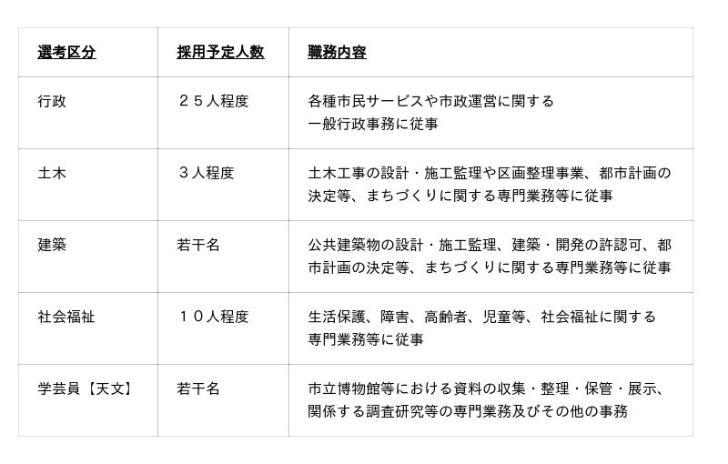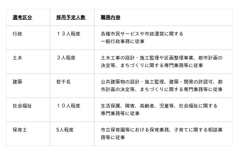 ※ 採用予定人数の少ない試験区分については、採用予定人数に達し次第、年度途中でも募集を終了する