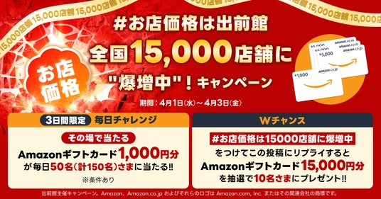 期間中毎日チャレンジでき、その場でAmazonギフトカードが当たるキャンペーンを、出前館公式Xアカウントにて実施いたします。