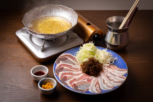 沖縄県産のやわらかく上品な甘みと旨味が特徴の希少あぐー豚を、お店で一枚ずつ丁寧にスライスし、一人前から楽しめるスタイルの「あぐー豚1秒しゃぶしゃぶ」が話題となっております。