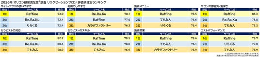 『リラクゼーションサロン』評価項目別ランキング(2026年 オリコン顧客満足度(R)調査)