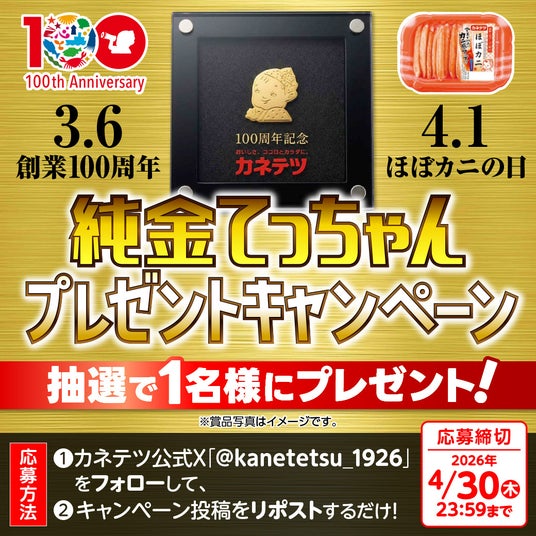 2026年3月に創業100周年を迎えたカネテツデリカフーズ株式会社(本社:兵庫県神戸市 代表取締役社長:村上 寛)は、一般社団法人 日本記念日協会に認定登録された「ほぼカニ(R)の日」(4月1日)」に合わせ、人気商品「ほぼカニ(R)」の大幅リニューアルおよび魅力発信を強化します。