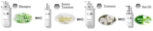 ※ブースタートリートメントをスキップし、ステップ3のヘアトリートメントをシャンプーの次に使用していただくことも可能です。