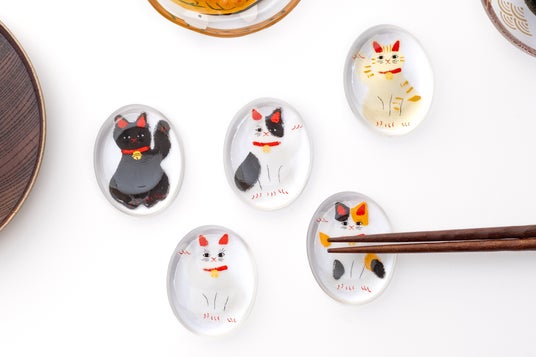 "福を招く猫"のガラス箸置き 「めでたmono招き猫 箸置き」 4月10日発売