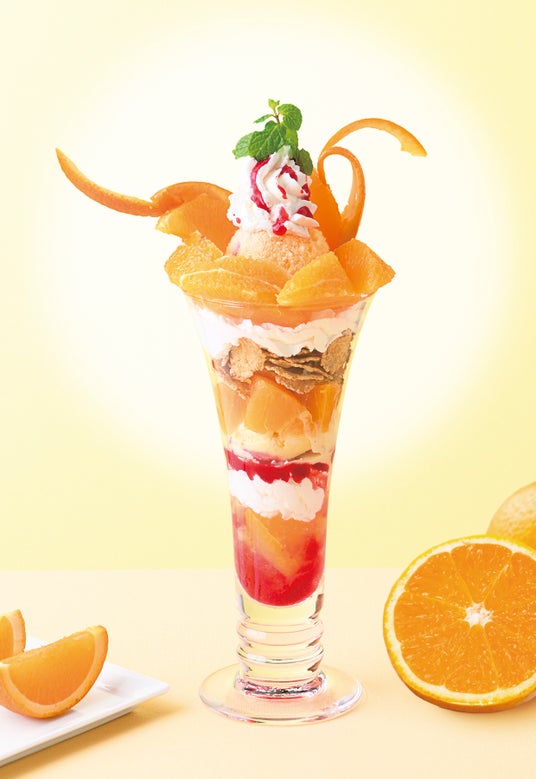 銀座コージーコーナーのカフェ・レストランで人気の、旬のフルーツを使った「旬のフルーツ直行便」に、愛媛県産「清見オレンジ」と、宮崎県産「日向夏(ひゅうがなつ)」を使ったパフェが登場します。