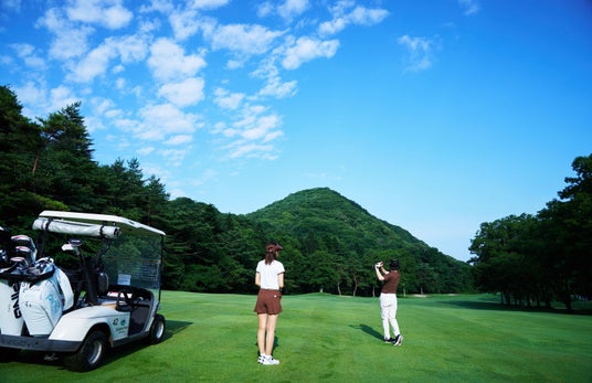 雄大な浅間山を望むロケーションに広がる、爽快感あふれる18ホールの2サムゴルフコース。
