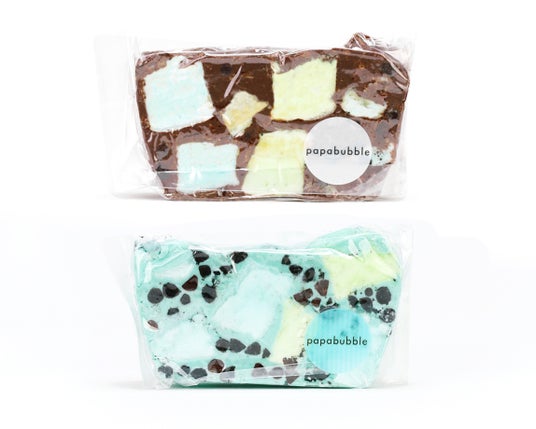毎年人気のPAPABUBBLEのチョコミントシリーズの中でも、特におすすめのチョコレート商品。ロッキーロードとは、チョコレートの中にマシュマロやクッキーなどを混ぜ込んだ、断面の見た目と食感を楽しめるチョコレートです。