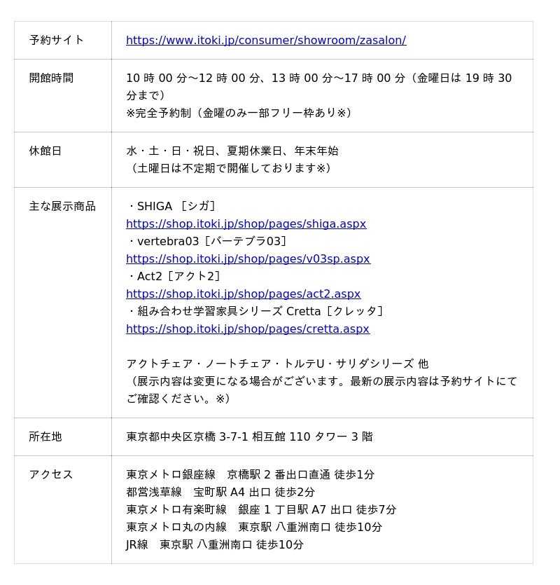 ※詳細は予約サイトでご確認ください https://www.itoki.jp/consumer/showroom/zasalon/