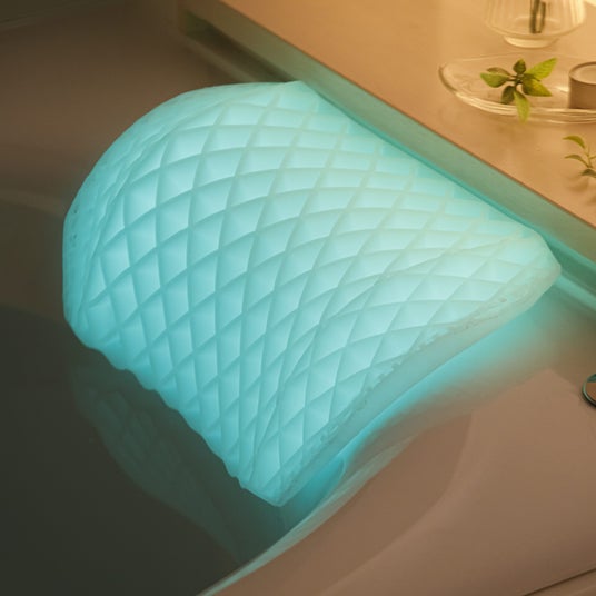 湯船に身をゆだねながら、ふわっと頭をあずけて深くくつろげるお風呂まくら。やさしくフィットする柔らかな感触が心までほどけるようなリラックスを届けてくれます。防カビ仕様で清潔に使え、暗闇でほんのり光る蓄光素材が癒しのバスタイムをそっと彩ります。