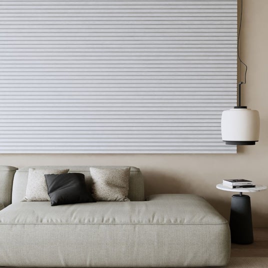 高周波数域(2000Hz~)で吸音効果が期待できるパネル。吸音材が衝撃を吸収し、不要な反響音を抑えます。寝室やリビングなど、お部屋のアクセントパネルとしても使えます。サイズ:(約)幅120cm×奥行き28.5cm)