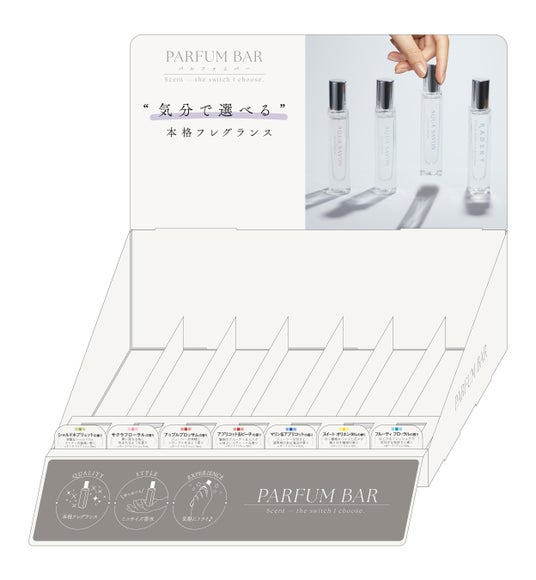 近年、国内のフレグランス市場が拡大し、選択肢が広がる中で、「自分に合う香りがわからない」と感じる生活者の声もみられます。そこでウエニ貿易は、香りをもっと気軽に試せる機会が必要だと考え、生活者が日常的に立ち寄りやすいドラッグストアで、複数ブランドの香りを比較しながら選べるミニサイズ香水シリーズ「PARFUM BAR」を展開します。店頭でさまざまなブランドや香りに触れながら、自分に合う香りに出会える売り場を目指します。