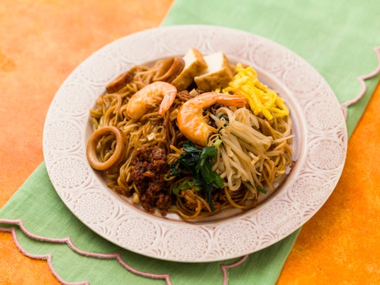 「ホッケンミー」とは、シンガポールやマレーシアで親しまれている海老や豚骨の出汁が効いた海鮮焼きそばのこと。本商品は海老の味わいを存分にお楽しみいただける点が特長です。海老の濃厚な味わいを出すために、ソースには海老オイル、海老味噌、海老エキスを惜しみなく使用。製造の最終工程で火を止めてから海老オイルを加えることで、芳醇な海老の香りをソースに閉じ込めました。麺は、ビーフンと自家製中華麺の2種類を使用する「シンガポール式」を採用。味つけは中国醤油やオイスターソースを加えた「マレーシア式」にすることで深いコクを生み出しました。両国の魅力を料理人の感性で掛け合わせた、成城石井流のアレンジが際立つ一皿がここに完成しました。