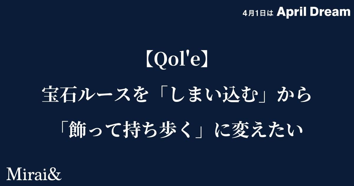 Mirai&株式会社(所在地:茨城県つくば市、代表:今野健介)は、宝石アクセサリーブランド「Qol'e(コレ)」を通じて、宝石ルース(裸石)を引き出しにしまい込むのではなく、バッグに飾って毎日持ち歩ける文化を届けることを夢として掲げます。