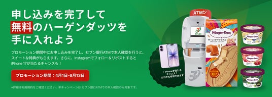 4月1日(水)~6月13日(土)の期間中にCALL SIMをお申し込みいただきセブン銀行の「ATM窓口」での本人確認を完了された新規ご契約者様に、もれなくセブン-イレブンで交換できるハーゲンダッツ1つをプレゼントいたします。