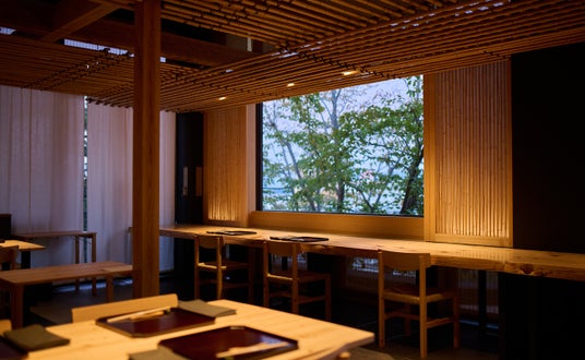 【夕食】ミシュラン1つ星を獲得された東京・南青山にある日本料理店「てのしま」の林亮平シェフが監修。地元の旬の食材を、セレクトされたお酒と一緒に。お食事処でご提供する季節を感じる、洗礼された日本料理のコースです。これに「ひなたの杜」湯川氏の猪を用いたステーキ一皿、また大阪・天満のワインショップ「salvis」代表 野口氏による、この日のためのワインペアリングが加わります。
