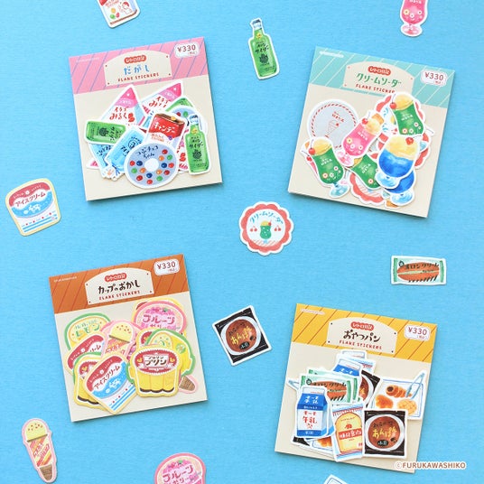 フレークシールやメモは和紙を、レターセットには柔らかく繊細な風合いを特徴とする日本三大和紙のひとつ“美濃和紙”を使用し、優しい手触りや風合いも魅力的。心が弾む駄菓子や昔懐かしい菓子パンなど、温かみのある絵柄がたくさん!ちょっとだけ特別な、温かい毎日を思い起こさせる全28品番のラインナップを各330円(税込)でお届けします。
