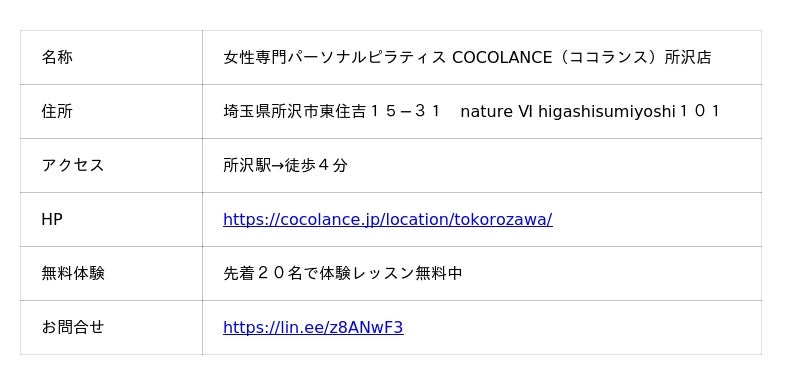 【所沢駅 徒歩4分】女性専門パーソナルピラティス COCOLANCE(ココランス)所沢店が2026年5月15日にオープン
