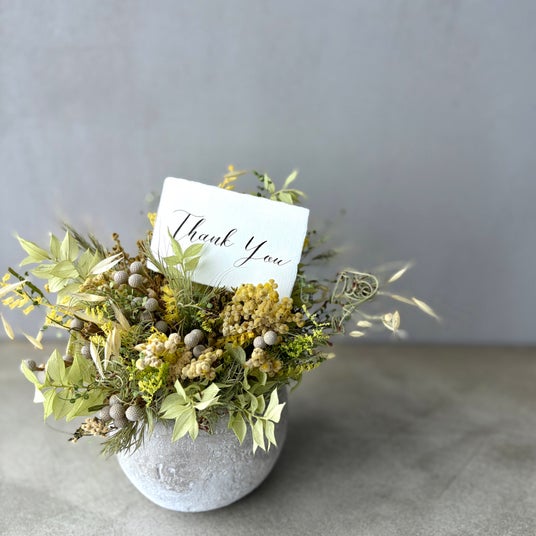 植物ひとつひとつの表情を楽しめるデザイン。お花を好むお母様の感性に、そっと響くアレンジメントです。
