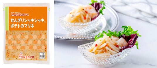 (左)せんぎりシャキシャキポテトのマリネ/(右)メニュー:せんぎりシャキシャキポテトのマリネ