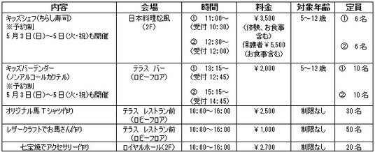 ※アクティビティ、ワークショップは当日会場で受付を承りますが、キッズシェフ、キッズバーテンダーは少人数制のため、事前予約【4月10日(金)より受付】をおすすめいたします
