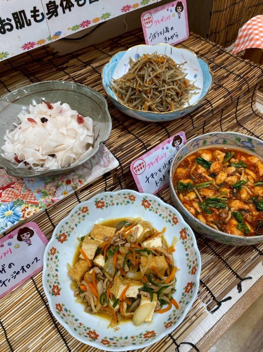 コラーゲンゼリーの「愛しとーと」のレストラン『愛しとーとごはん』では、体に優しいこだわりのメニューをコラーゲンたっぷりのバイキング形式でご提供しております。4月の新メニュー18種類をお楽しみください。