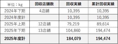 ※回収店舗数には含まれていませんが、回収実績には、グループ各社内の従業員食堂や、レストラン路面店(鼎泰豊池袋東口S店)など4店舗での回収分も含まれています。